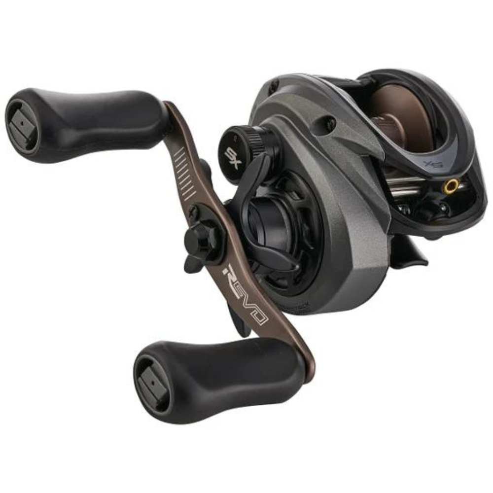 Representing its 5th generation of excellence, the popular Abu Garcia® Revo®5 SX Baitcast Reel has been redesigned for optimal precision, power, and performance. This updated version is built on Abu’s new asymmetrical body design to optimize weight, balance, and ergonomics, and also features the EXD (Extreme Distance) Concept Design which optimizes the path in which line leaves the spool and flows through the line guide, leading to effortless casting. From there, the Revo5 SX offers all the smoothness, torque, and power anglers have come to rely on, with its lightweight X2-Cräfticâ„¢ aluminum alloy frame and C6 Carbon sideplates, rugged Duragearâ„¢ Gen II gearing with D2 Gear Designâ„¢, and advanced IVCB-4 centrifugal brake system. Its 9+1 system incorporates stainless steel ball bearings plus instant anti-reverse, while the super-smooth Power Stack Carbon Matrixâ„¢ drag system provides an impressive 25 lbs. of run-stopping power. 90mm bowed aluminum handle with oversized knobs for crankin’ leverage. For the angler looking for a workhorse baitcaster with plenty of smooth power and nearly limitless braking options, the Revo5 SX offers a great value.