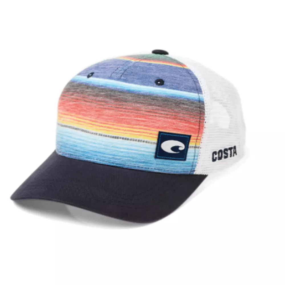 Be ready for any outdoor adventure with the Costa Baja Stripe Trucker Hat. Made with a stylish structured five-panel cap and adjustable snap closure back, this hat adds an element of style to any outfit. Enjoy stylish comfort and protection with the Costa Baja Stripe Trucker Hat!