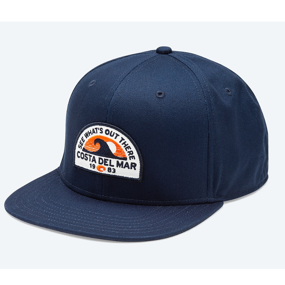 The Costa Maverick Flat Brim Snapback Hat is designed to keep you comfortable in the sun while looking your best. The high crown and flat brim will keep you stylish, while the size panel construction and snap back closure offer superior fit and adjustable comfort. Plus, Costa embroidery on the back adds a unique touch. Perfect for long days out on the water!
