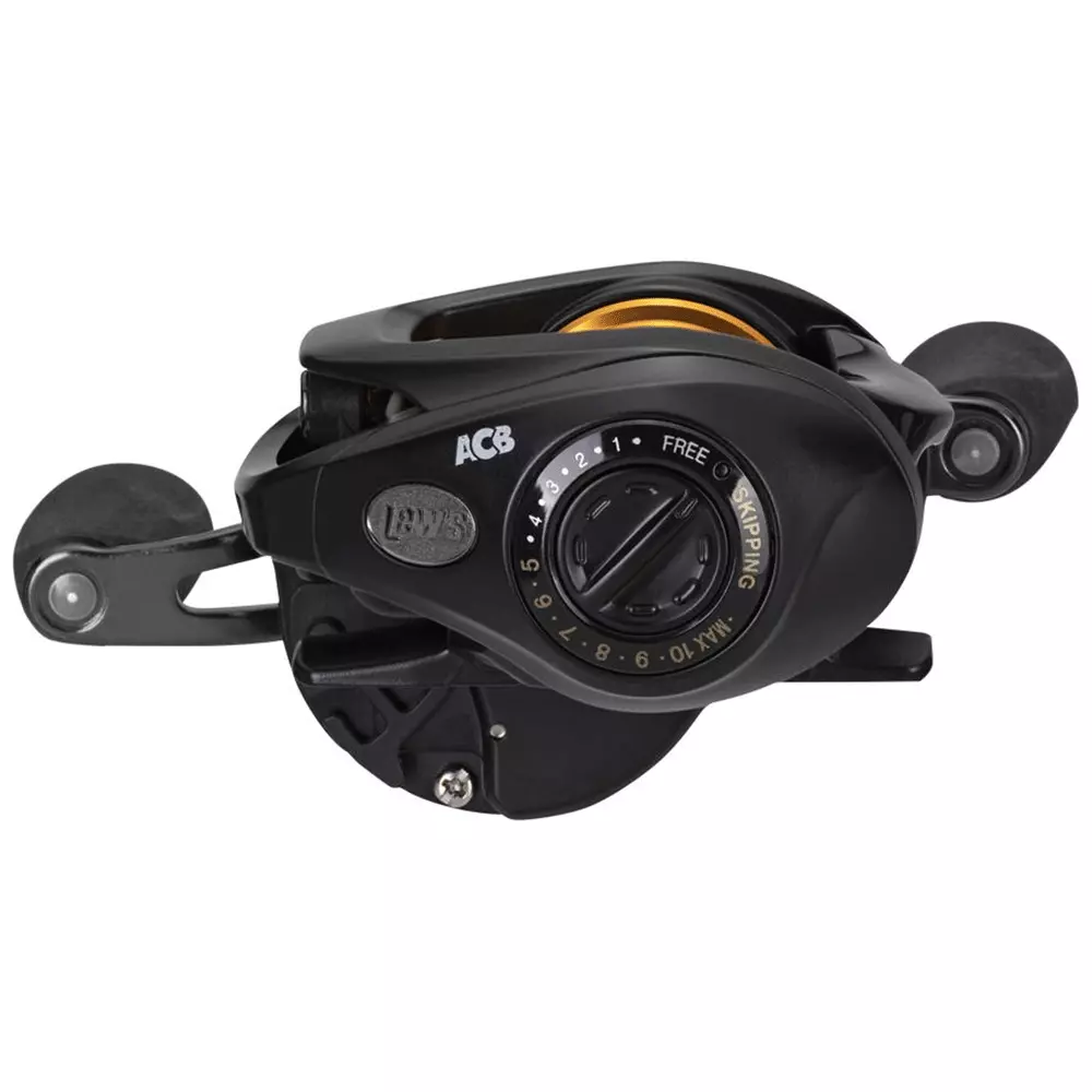 The super shallow spool holds 40 yards of 20-pound-test Fluorocarbon for faster spool start up and Reduced deep spool backlashes. The innovative Knot Slot recesses the spool knot so you have smooth, even line lay. The externally adjustable QuietCast ACB system included a special “Skipping Zone†to maximize distance and Reduce backlash when skipping a bait under a dock. The result is a reel that has all the performance of a Lew’s reel, finely tuned for skipping and pitching. According to Montgomery, “This reel let’s me skip a bait further and with less backlash than ever beforeâ€.