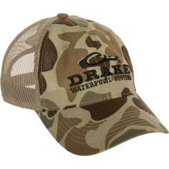Drake Waterfowl Six Panel Camo Mesh Back Raised Logo Hat