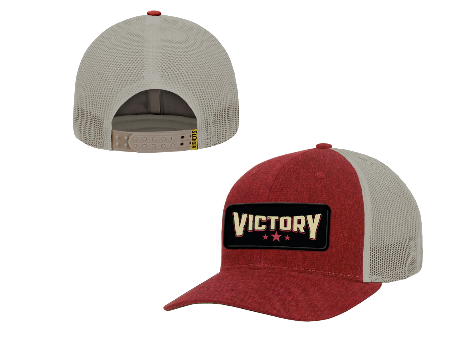 The all new Victory cap is here! This high-profile, structured cap features a unique heather red front and a double row snap back closure!
